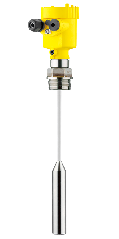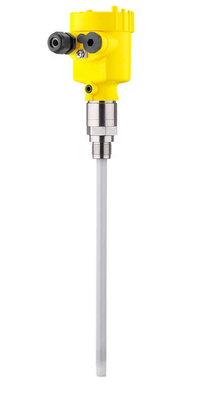 El VEGACAP 64 es un sensor de nivel límite para líquidos conductores. La sonda de medición de varilla está completamente aislada y es adecuada especialmente para líquidos viscosos y adherentes.